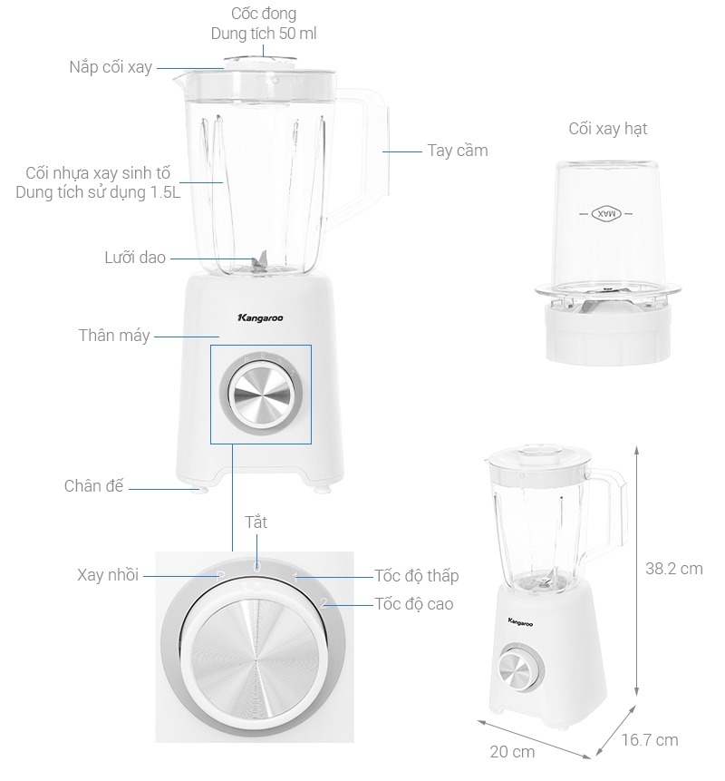 Mặc dù cối nhỏ 0.3 lít không thích hợp để xay lượng nguyên liệu quá nhiều, nhưng với nhu cầu của gia đình 2 - 4 người, điều này vẫn hoàn toàn đủ dùng. Với thiết kế hiện đại, công suất mạnh mẽ, nhiều tính năng an toàn và hai cối xay tiện dụng, Kangaroo KGBL2P2 thực sự là trợ thủ đắc lực trong căn bếp. Từ món sinh tố mát lạnh đến các loại gia vị thơm nồng, máy đều xử lý nhanh gọn, giúp tiết kiệm thời gian mà vẫn giữ trọn hương vị món ăn.