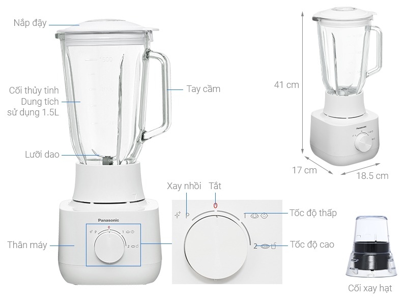 - Máy xay sinh tố Panasonic có cối chính làm từ thủy tinh trong suốt, được thiết kế dễ dàng vệ sinh, chống mùi, trầy xước, tránh tình trạng đổi màu, giúp duy trì độ bền và vẻ đẹp của sản phẩm.
