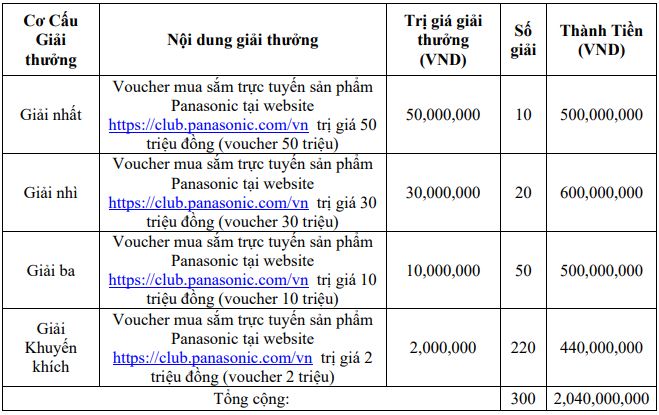 - Địa điểm xác định trúng thưởng: Trung tâm Panasonic Air-Conditioning Training Center, tầng 13, tòa nhà Charmvit, 117 Trần Duy Hưng, Phường Trung Hòa, Quận Cầu Giấy, TP. Hà Nội