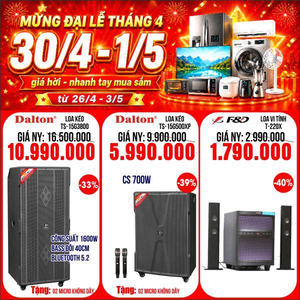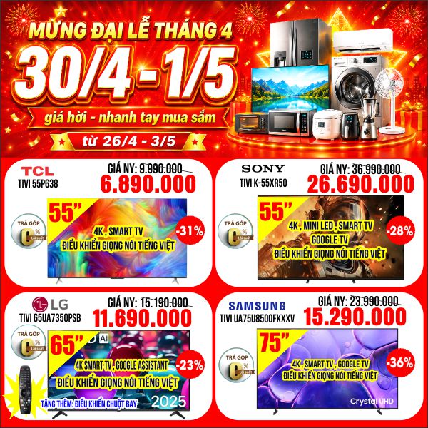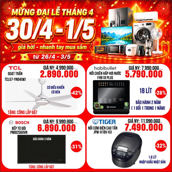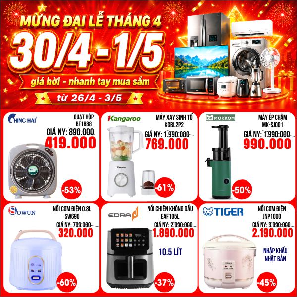 MỪNG ĐẠI LỄ THÁNG 4 ( 10/03 - 30/4 - 01/05) TỪ 26/04 đến hết 03/05/2026
