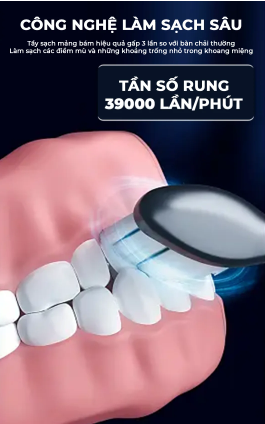 Với khả năng rung động lên đến 39.000 lần/phút, Magic Eco PRO-50 tạo ra sức mạnh làm sạch ấn tượng, giúp tẩy sạch mảng bám hiệu quả gấp 3 lần so với bàn chải thông thường. Công nghệ này đảm bảo mọi ngóc ngách, kể cả các "điểm mù" và kẽ răng nhỏ nhất, đều được làm sạch sâu, loại bỏ vi khuẩn và thức ăn thừa.