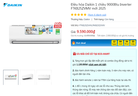 Nếu bạn muốn giá mềm hơn một chút, ưa thích thương hiệu Daikin quen thuộc và không cần khử khuẩn toàn phòng, FTKF25 vẫn là một lựa chọn chất lượng.