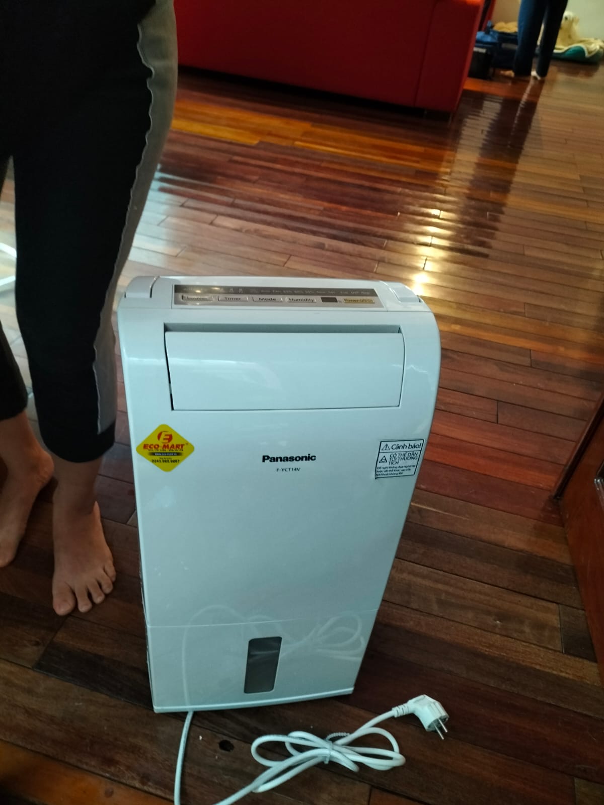 Chị Ngọc Anh tại Tây Hồ, Hà Nội đã chọn mua máy hút ẩm Panasonic F-YCT14V. Đây là sản phẩm có công suất hút ẩm 14 lít/ngày, phù hợp với không gian có diện tích từ 20-30 m². Dù trời mưa, nhân viên ECO-MART vẫn giao hàng tận nơi và hướng dẫn chị cách sử dụng cũng như kiểm tra hàng ngay tại nhà. Chị Ngọc Anh rất hài lòng với sản phẩm chính hãng và giá tốt của ECO-MART.