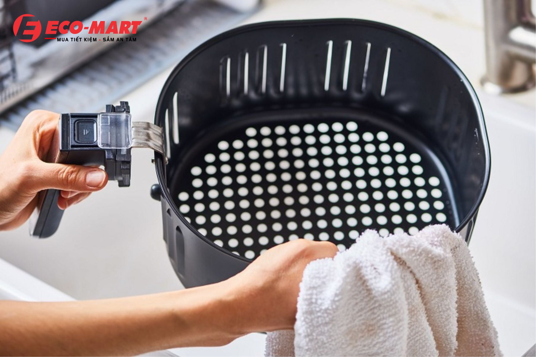 Chị em lấy hết thức ăn ra khỏi thanh đốt ngay sau khi thiết bị nguội rồi vệ sinh nồi chiên không dầu là có thể sử dụng bình thường được. Đấy là cách khắc phục nếu nồi chiên gặp phải tình trạng này.