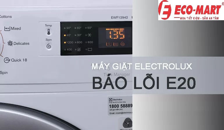 Máy giặt electrolux hiển thị lỗi E20 là lỗi không ít người sử dụng thường gặp phải. Vậy lỗi E20 có nghiêm trọng không? Đâu là Nguyên nhân và cách khắc phục máy giặt Electrolux Lỗi e20 này như nào? Các bạn hãy cùng Điện Máy Eco-Mart theo dõi bài viết dưới đây để tìm hiểu được chính xác nhé !