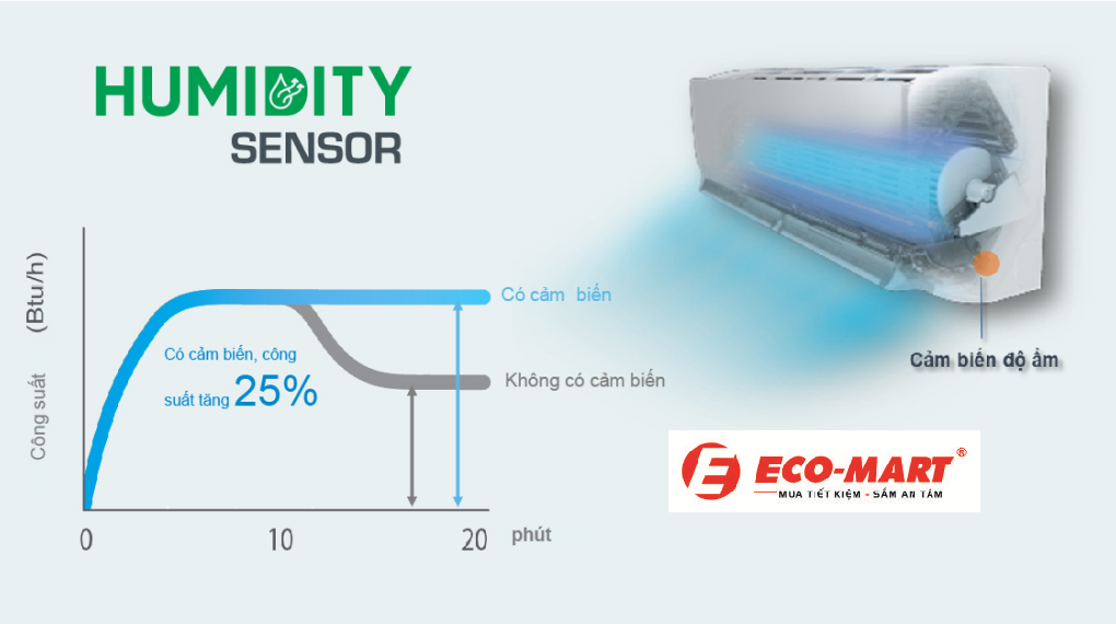 + Tăng cường khử ẩm với cảm biến ẩm: Điều hòa Daikin 2 chiều tích hợp cảm biến ẩm giúp duy trì độ ẩm phòng ở mức lý tưởng từ 55 – 60%, mang lại cảm giác thoải mái cho người dùng.