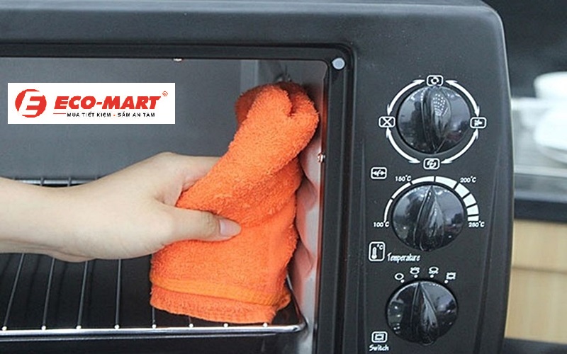 Cách vệ sinh: Sử dụng khăn ẩm và nước xà phòng nhẹ để lau sạch bên trong lò. Nếu có vết bẩn cứng đầu, bạn có thể dùng hỗn hợp baking soda và giấm để làm sạch.