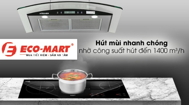 Máy hút mùi Kocher kính cong 90cm K-228S90 có công suất hút lớn mùi nhanh