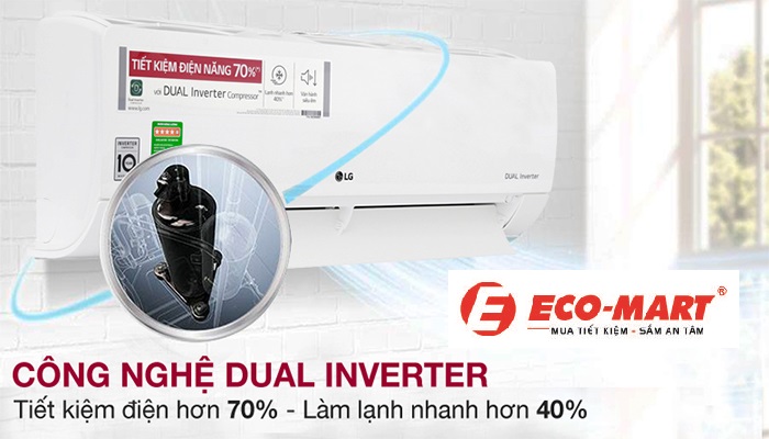 1. Công nghệ Dual Inverter giúp tiết kiệm tới 70% điện.