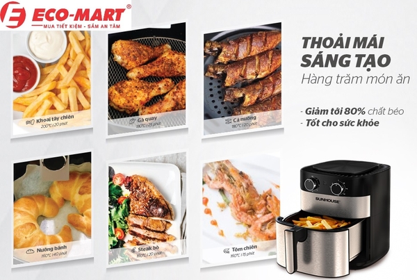 Nhà có 4-5 người dùng nồi chiên không dầu nào là tốt? Vì sao có câu hỏi này, là vì trên thị trương có vô vàn các thương hiệu và hàng ngàn mẫu nồi chiên không dầu, nên chon được nồi chiên nào tốt thật khó khăn. Vậy hôm nay, điện máy Eco-mart sẽ giới thiệu đến bạn 4 loại nồi chiên không dầu 6L phù ợp với gia đình 4-5 thành viên.