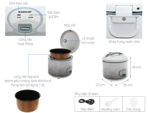 Giới thiệu sản phẩm Nồi cơm điện SUNHOUSE SHD8602-01 – Cơm ngon, dáng xinh, chuẩn phong cách Hàn