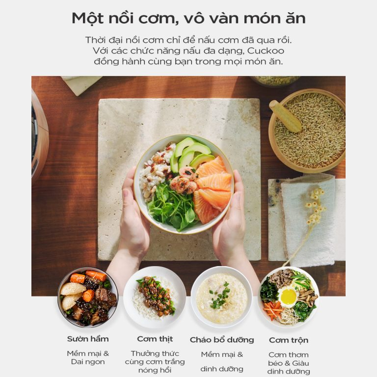 Ngoài chức năng nấu cơm, sản phẩm còn hỗ trợ nhiều chế độ như nấu cháo, cơm trộn, gạo lứt, nấu nhanh… giúp đa dạng hóa bữa ăn gia đình. Đặc biệt, tính năng tự làm sạch bằng hơi nước giúp loại bỏ mùi và vi khuẩn, tiết kiệm thời gian vệ sinh.