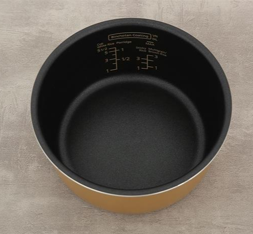 Nồi được trang bị lòng nồi dày 2.4 mm, phủ than hoạt tính Binchotan giúp truyền nhiệt nhanh và đều, giữ cơm tơi xốp và thơm ngon. Lớp phủ chống dính giúp hạn chế bám cơm và dễ dàng vệ sinh sau khi sử dụng.
