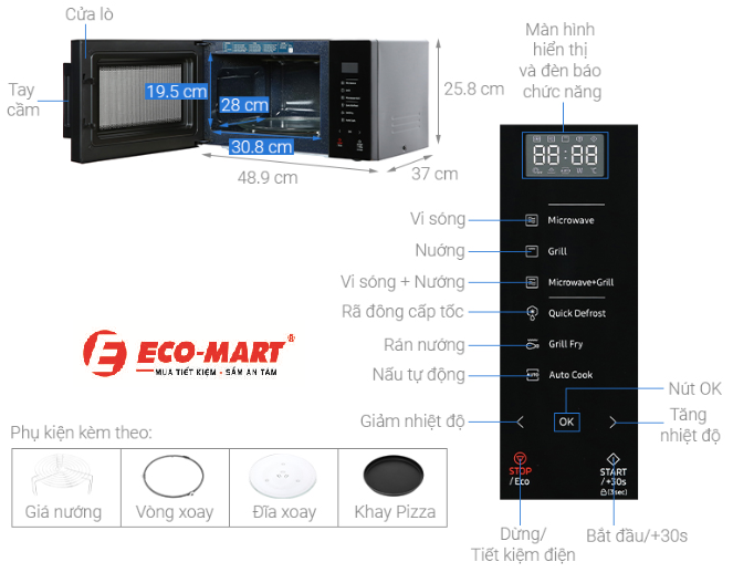 Chế độ tiết kiệm năng lượng Eco Mode: Chế độ Eco giúp tiết kiệm điện năng khi lò ở chế độ chờ, giảm thiểu mức tiêu thụ điện.