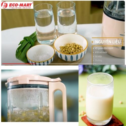 + Bạn cho 45gram đậu nành + 650ml nước vào máy.+ đường ( tùy vào khẩu vị mỗi người)+ vài hạt muối