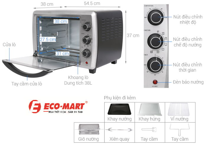 Bảng điều khiển cơ học dễ sử dụng: Lò nướng này sử dụng bảng điều khiển nút xoay đơn giản, dễ thao tác. Người dùng có thể dễ dàng lựa chọn chế độ nướng, điều chỉnh nhiệt độ và thời gian.