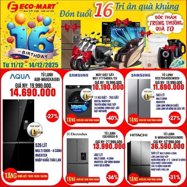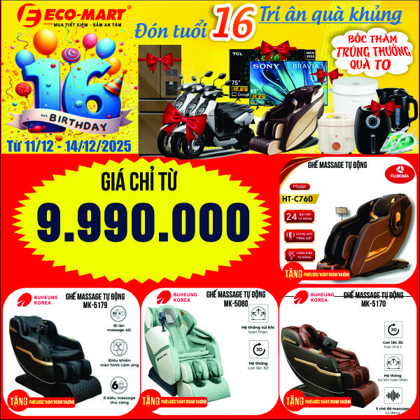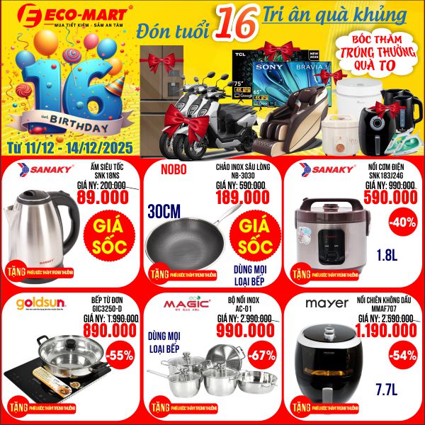 🎉🎂 SINH NHẬT ECO-MART 16 NĂM – ĐẠI TIỆC LỚN NHẤT NĂM 🎂🎉 từ 11/12 đến 14/12/2025