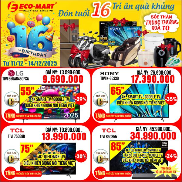 🎉🎂 SINH NHẬT ECO-MART 16 NĂM – ĐẠI TIỆC LỚN NHẤT NĂM 🎂🎉 từ 11/12 đến 14/12/2025 Thứ Tư, 10/12/2025 Makerting Eco Mart Viết bình luận của bạn Gửi thông tin Danh mục VIDEO CẬP NHẬT TIVI - LOA TỦ LẠNH ĐIỀU HÒA MÁY GIẶT ĐỒ GIA DỤNG LAPTOP/MÁY TÍNH GHẾ MASSAGE TỦ ĐÔNG/TỦ MÁT MÁY RỬA BÁT Tin tức nổi bật TẾT BỪNG SẮC, VẠN DẶM VƯƠN CAO – KHUYẾN MÃI TIVI TCL ĐẶC BIỆT TẠI SIÊU THỊ ĐIỆN MÁY ECO-MART 08/01/2026 🎉🎂 SINH NHẬT ECO-MART 16 NĂM – ĐẠI TIỆC LỚN NHẤT NĂM 🎂🎉 từ 11/12 đến 14/12/2025 10/12/2025 TẶNG GÓI ỨNG DỤNG GIẢI TRÍ CAO CẤP KHI MUA TV SONY GOOGLE TV TẠI ECO-MART 06/12/2025 🎉 BLACK FIRDAY – SALE RỰC RỠ, RẺ KHÓ ĐỠ 🎉 🔥 Duy nhất từ 27.11 – 30.11🔥 25/11/2025 💥Sale 11.11 – GIẢM ĐẾN 54% – chỉ từ 08/11/2025 → 11/11/2025 🔥 07/11/2025 🎉 MỪNG 20/10 – QUÀ TO CHO NỮ THẦN GIA ĐÌNH! 🎉 Từ 18/10/2025 đến 20/10/2025 17/10/2025 TUYỂN DỤNG NHÂN SỰ – SIÊU THỊ ĐIỆN MÁY ECO-MART ĐÔNG ANH 14/10/2025 🌧️✨ ECO-MART ĐỒNG HÀNH QUA BÃO LŨ – SẺ CHIA KHÓ KHĂN, HỖ TRỢ THIẾT THỰC! ✨🌧️ 11/10/2025 Quy định đổi trả hàng hóa tại Siêu thị điện máy ECO-MART 09/10/2025 ✨🇻🇳 ECO-MART TƯNG BỪNG KHUYẾN MẠI – MỪNG NGÀY GIẢI PHÓNG THỦ ĐÔ 10/10 🇻🇳✨ 📅 Thời gian: Từ 09/10/2025 đến 11/10/2025 06/10/2025 🌟Sẵn Sàng Cùng TCL – Rực Rỡ Hành Trình Vinh Quang🌟 03/10/2025 🎉 Ưu đãi hết ý – Chốt tủ rinh quà cùng LG tại Eco-mart 🎉 27/09/2025 Eco-Mart Tự hào đạt chứng nhận Đại lý Xuất sắc Ferroli 2025 19/09/2025 Eco-Mart Đối tác Chiến lược Gree 2025, khẳng định uy tín phân phối điều hòa Gree chính hãng cùng dịch vụ chuyên nghiệp 17/09/2025 Eco-Mart Đối tác Chiến lược 2025 của AQUA, khẳng định uy tín phân phối sản phẩm AQUA chính hãng cùng dịch vụ chuyên nghiệp. 17/09/2025 Eco-Mart Đại lý Daikin 2025 – khẳng định uy tín phân phối điều hòa Daikin chính hãng, dịch vụ lắp đặt và bảo hành chuyên nghiệp toàn quốc. 17/09/2025 Eco-Mart được vinh danh Electrolux Trusted Partner 2025 – khẳng định uy tín phân phối sản phẩm Electrolux chính hãng, dịch vụ chuyên nghiệp và tận tâm tại Việt Nam. 17/09/2025 🔥 FLASH SALE 9.9 – SALE SẬP SÀN 🔥 từ 09.09.2025 đến 11.09.2025 08/09/2025 🎉 MỪNG QUỐC KHÁNH – NGÀY HỘI GIẢM GIÁ CỰC ĐÃ TẠI ECO-MART! Từ 30/08/2025 đến 02/09/2025 27/08/2025 Ưu đãi đặc biệt khi mua Tivi Sony – Nhận ngay quà tặng giải trí đỉnh cao! 25/08/2025 Tags #ecomart #eco-mart #nhân viên bán hàng #nhân viên giao hàng #siêu thị eco-mart #tuyển lái xe #tuyendung #tuyenlaixe #tuyennguoi #tuyennhanvien 2026 Đại lý Daikin 2025 Điều hòa Daikin chính hãng ecomart Eco-Mart Daikin Trusted Dealer Eco-Mart đối tác Daikin giảm giá khuyến mại khuyến mại 20/10 khuyenmai laptop Máy giặt Mua điều hòa Daikin tại Eco-Mart nồi cơm phụ nữ việt nam quatang Siêu thị điện máy Eco-Mart Siểu thị eco-mart tặng quà tcl tet2026 tivi tủ lạnh