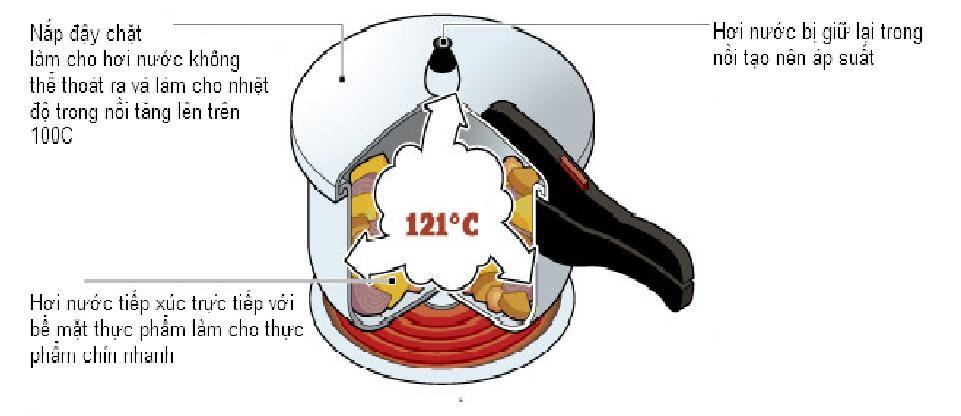 - Nồi áp suất tạo ra môi trường áp suất cao nhờ nhiệt và hơi nước, để nấu thực phẩm chín một cách nhanh chóng.