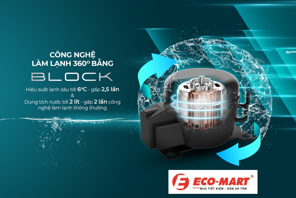 + Ngoài ra, máy còn có dung tích nước lớn tới 2 lít, gấp 2 lần so với các máy lọc nước thông thường. Sử dụng block làm lạnh giúp máy chạy bền hơn và nâng cao tuổi thọ của máy lọc nước.