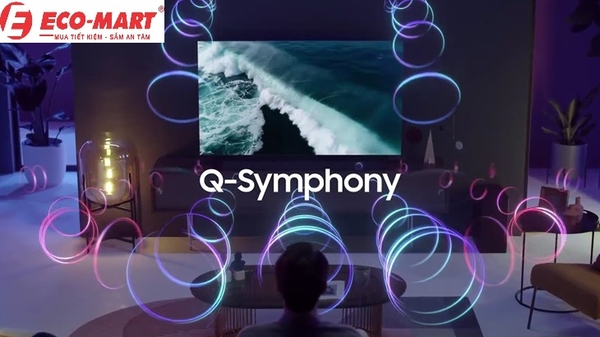 - Công nghệ Q-Symphony kết hợp loa Smart tivi Samsung với loa thanh tạo nên chất âm mạnh mẽ, bao quanh người nghe, cho bạn đắm chìm vào thế giới âm nhạc đa sắc, cuốn hút.