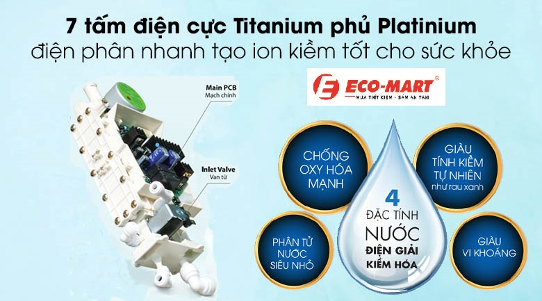 Tấm điện cực Titan trong máy lọc nước tạo ion kiềm là một thành phần cốt lõi chịu trách nhiệm thực hiện quá trình điện phân nước, giúp tạo ra nước ion kiềm và nước ion axit. Các tấm điện cực này thường được làm từ titan và phủ thêm lớp platinum (bạch kim) để nâng cao hiệu suất và độ bền. Hãy cùng Eco-mart tìm hiểu nhé.