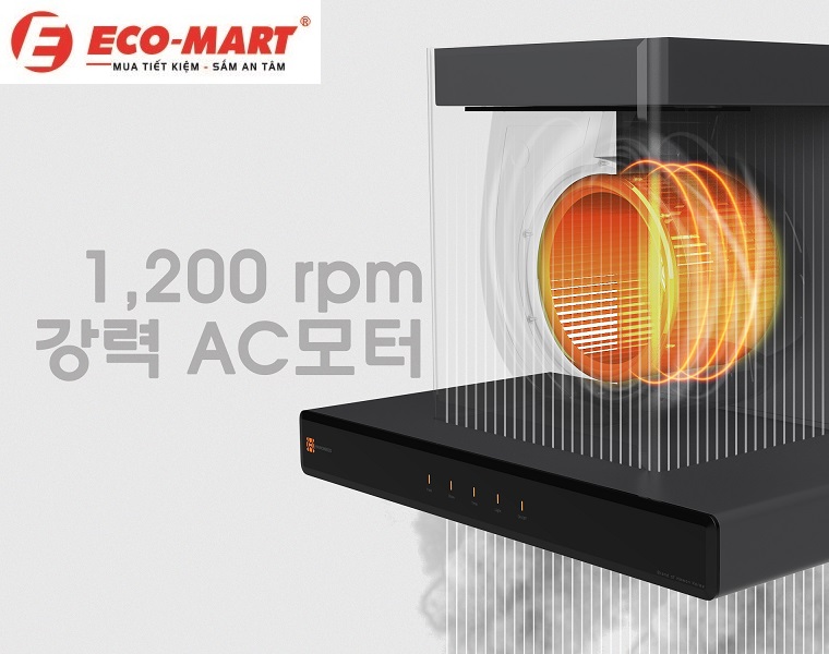 - Công suất hút: 1200 m³/h, giúp hút sạch mùi hôi và khói bếp.
