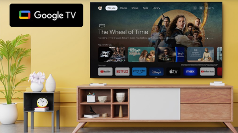 - Hệ điều hành Google TV giao diện thân thiện, dễ sử dụng. Bên cạnh đó là kho ứng dụng phong phú đáp ứng đa dạng nhu cầu giải trí cho cả gia đình như: Netflix, YouTube, FPT Play, VieON, Galaxy Play, Eco Dashboard,...