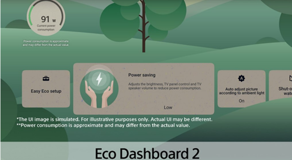 - Điều chỉnh mức tiêu thụ điện năng của tivi để tiết kiệm hiệu quả với bảng điều khiển Eco Dashboard.