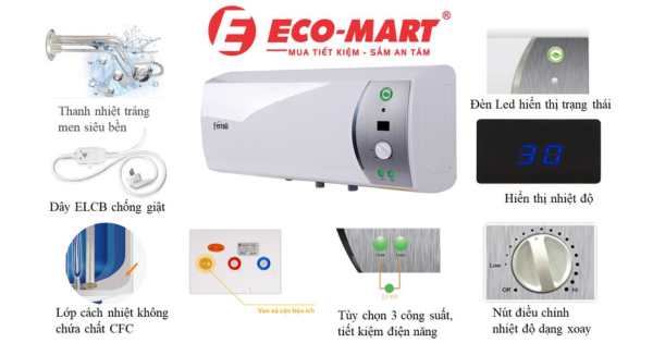 -Thanh nhiệt được tráng thêm 1 lớp men giúp ngăn ngừa tình tạng bám cặn bẩn, hạn chế ăn mòn giúp nước nóng nhanh