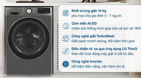 - Khối lượng giặt: 10 kg.