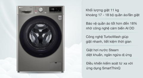 Máy Giặt LG Inverter 11 Kg FV1411S4P sở hữu kiểu dáng chắc chắn và bền bỉ, phù hợp với gia đình có nhu cầu giặt giũ lượng lớn quần áo. Công nghệ AI DD và TurboWash giúp làm sạch quần áo một cách hiệu quả và chăm sóc tốt cho áo quần. Công nghệ giặt hơi nước Steam giúp diệt khuẩn và mùi hôi cho áo quần hiệu quả. Động cơ biến tần Inverter tiên tiến giúp tiết kiệm điện năng và vận hành êm ái.