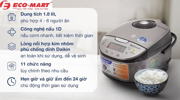 Nồi cơm điện 1,8L phù hợp với gia đình từ 4-6 thành viên, hôm nay, hãy cùng siêu thị điện máy Eco-mart tham khảo top 3 nồi cơm điện 1,8 Bluestone nhé