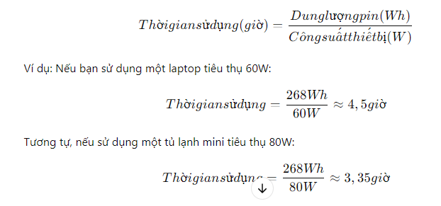 Để tính toán thời gian sử dụng cho thiết bị cụ thể, bạn có thể áp dụng công thức sau:
