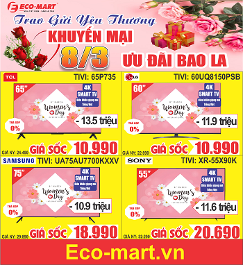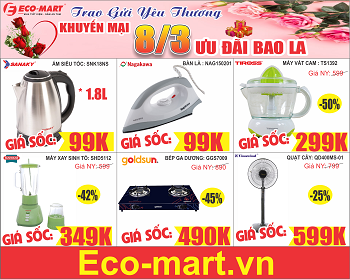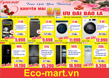🎁 Siêu thị điện máy Eco-mart ưu đãi khuyến mại duy nhất 5 ngày từ 8/3 đến 12/3