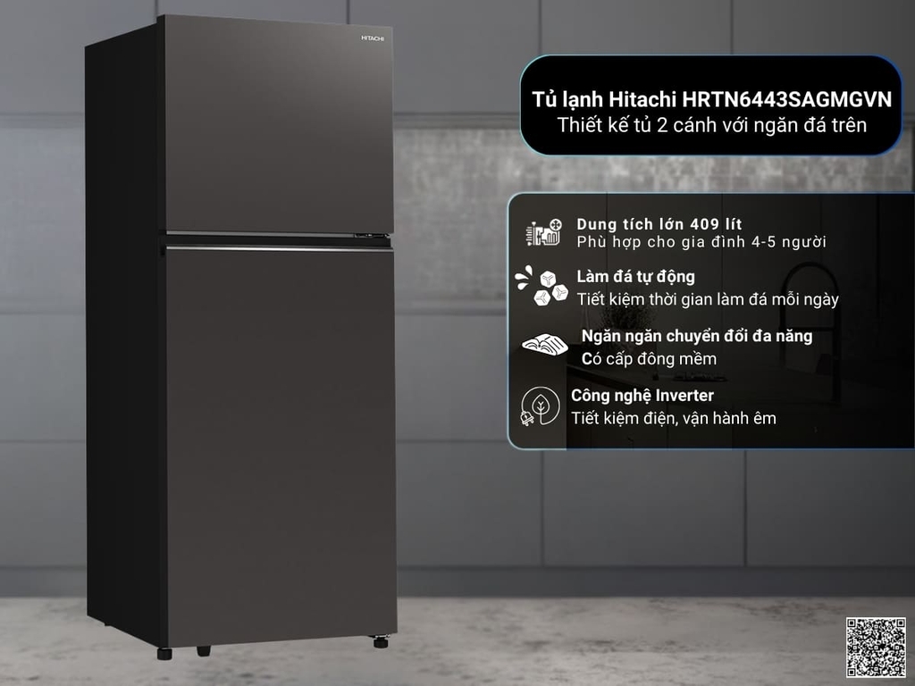 Tủ lạnh Hitachi Inverter 407 lít HRTN6443SAGMGVN không chỉ đáp ứng nhu cầu lưu trữ thực phẩm lớn mà còn mang đến sự tiện nghi, tiết kiệm năng lượng, chi phí cho gia đình.