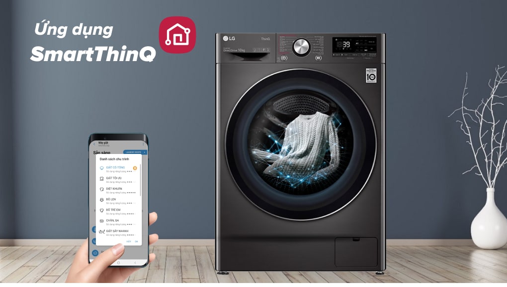 – Bạn có thể điều khiển máy giặt từ xa qua ứng dụng thông minh LG ThinQ: kết nối qua Wifi, ứng dụng thông minh LG ThinQ được trang bị trên điện thoại, máy tính bảng,… cùng trợ lý ảo Google Assistant và Alexa giúp bạn điều khiển máy giặt từ xa thuận lợi.