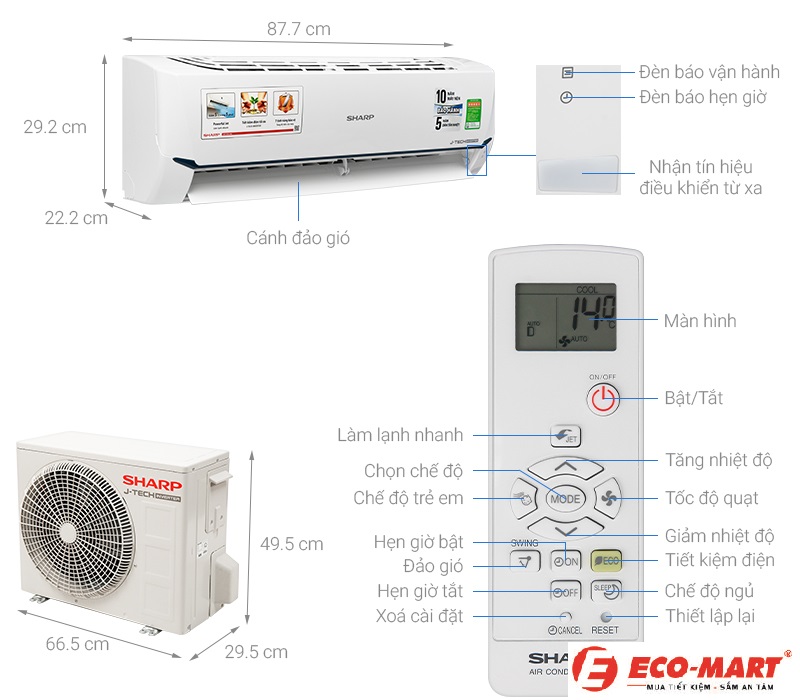 Điều hòa Sharp là một trong những thương hiệu điều hòa có tiếng trên thị trường, và cũng là một trong những hãng điều hòa bán chạy nhất tại siêu thị điện máy Eco-Mart. Để hiểu rõ vì sao điều hòa Sharp, lại được nhiều người tin tưởng và lựa chọn như vậy, thì mời các bạn cùng điện máy Eco-Mart tìm hiểu những ưu điểm của dòng điều hòa Sharp 9000Btu X9XEW nhé.
