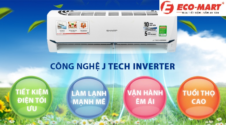 Mẫu điều hòa AH-X9XEW được trang bị công nghệ J-Tech Inverter độc quyền của hãng Sharp. Với công nghệ J-Tech Inverter sẽ giúp các bạn tiết kiệm được tới 60% tiền điện so với các dòng điều hòa cơ thông thường.