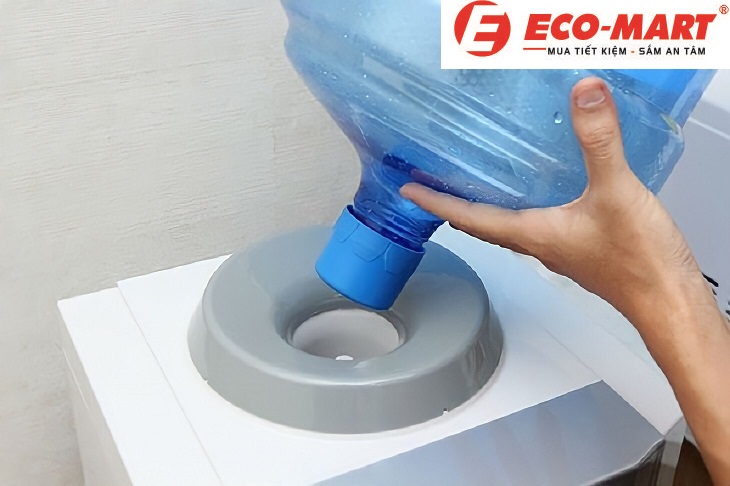+ Nhấc, tháo bình nước úp phía trên sang 1 bên.